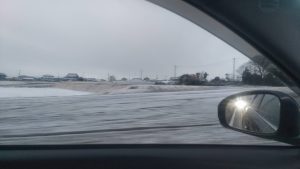 車で現場に向かう途中、雪で真っ白😱